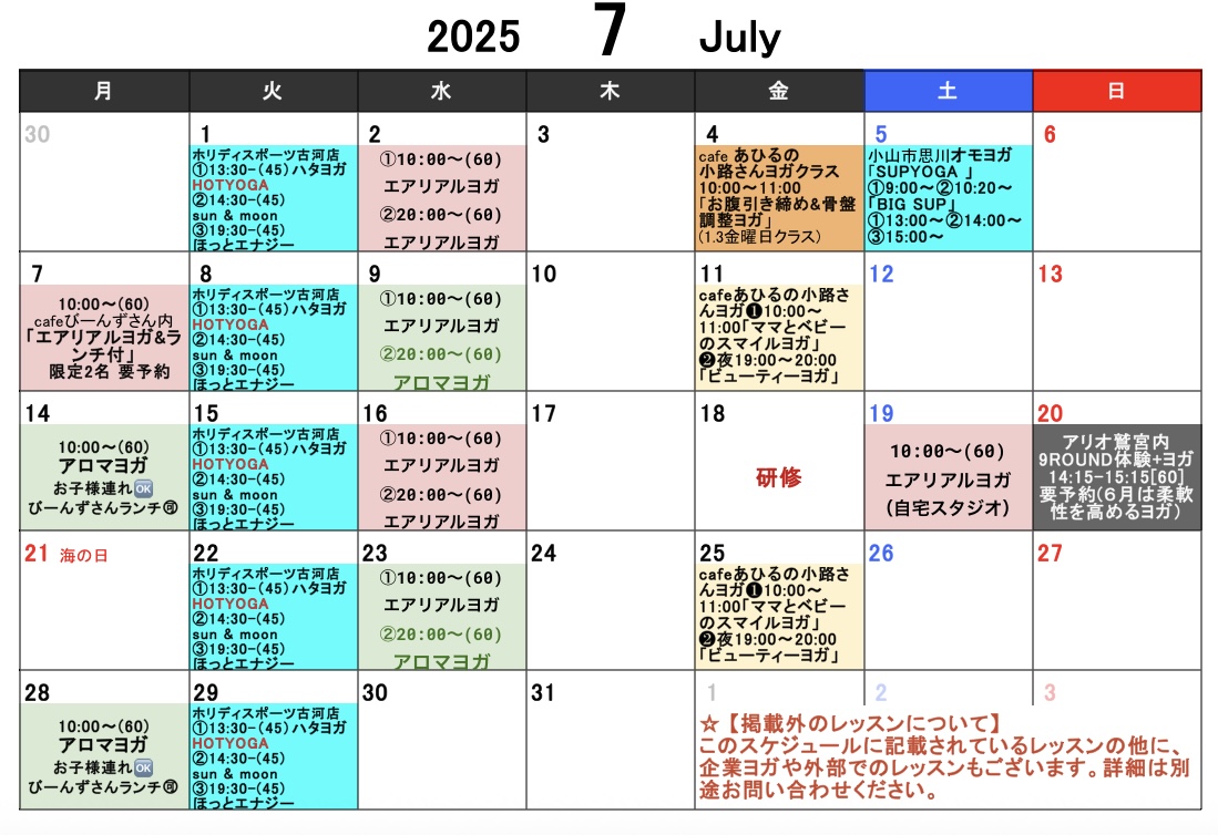 娘が超低体重児で産まれ脳損傷により右麻痺となってから整形外科の先生や理学 療法士、作業療法士の先生方から色々なマッサージや運動機能を回復する動き等 を教わってきました。その経験からヨガやストレッチまた最近取り入れたエアリアルヨ ガのハンモックを使って関節を緩めるストレッチ的な動きも合わせて体の機能を高め